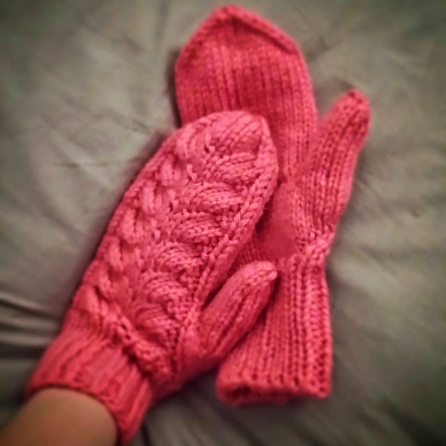 Pitkästä aikaa sain jotain aikaiseksi, jonka tännekin voi postata. Olen pitänyt neulomisesta taukoa oikeastaan koko kesän ajan,sillä kuumalla ei juuri neulominen kiinnosta. Ilmojen viiletessä palasivat puikot käteen. Olen tehnyt muutamia töitä valmiiksi, mutta kuvia en voi julkaista vielä. Ne kun ovat joululahjoja :) . Työn alla on tällä hetkellä itselle neuletakki, miehelle synttärilahjaksi lapaset, muutamat villasukat, tuubihuivi... ja sitten niitä töitä vielä, joita oon nyt "tehnyt" viimeiset 3-4 vuotta :D Mutta tässä nyt juuri sopivasti pakkaskeleille valmistuneet lapaset, jotka olen ihan itselleni väsännyt.